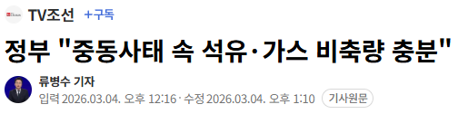 현재 우리나라의 석유와 가스 비축량은 충분하며
